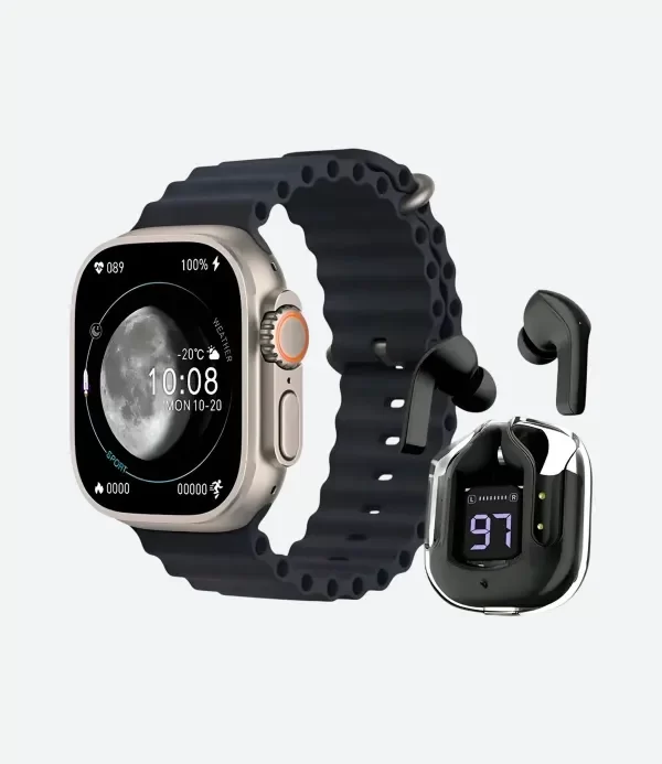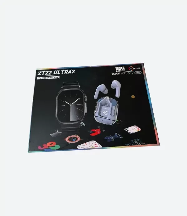 Kit ZT-22 7 + 1. Incluye un reloj inteligente, con siete mallas intercambiables de colores varios, mas un auricular ultrapods
